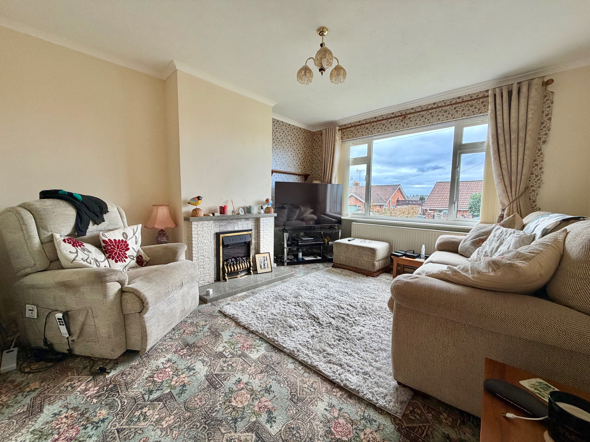 Could also be utilised as a dining room. Carpeted flooring, radiator, window to front aspect, feature fireplace.