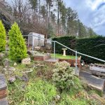 In the rear garden, there is an outbuilding providing outdoor storage space and access through the porch to the other side of the garden. It is tiered and has steps leading up to the top. There is a greenhouse for growing produce and shed for additional storage.
